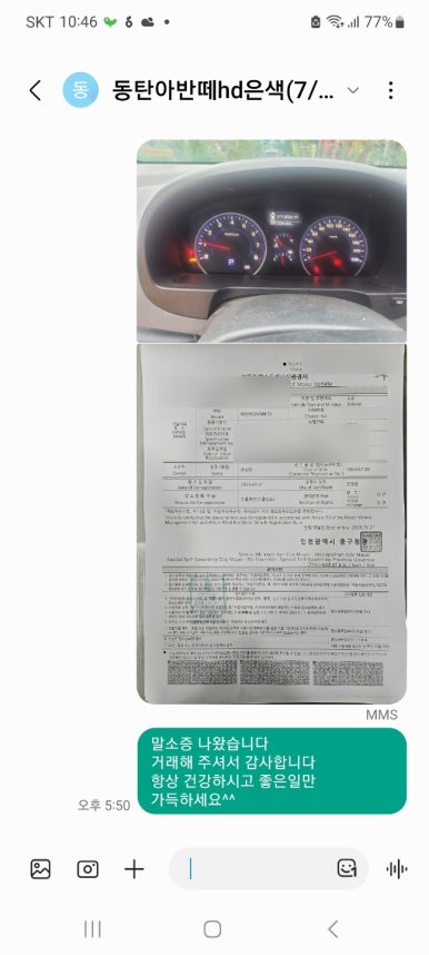 차주님께 말소증 인계 완료드렸고요. 이번 수출 거래도 깔끔하게 마무리해 드렸네요.