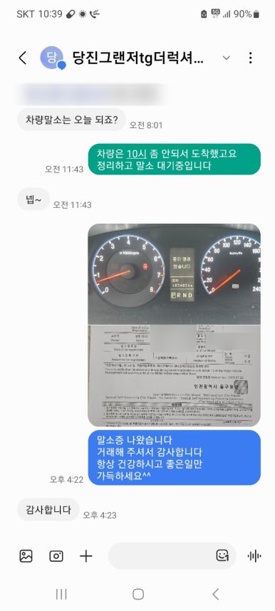 차주님께 말소증 인계 완료드렸고요. 이번 수출거래도 깔끔하게 마무리해 드렸네요.