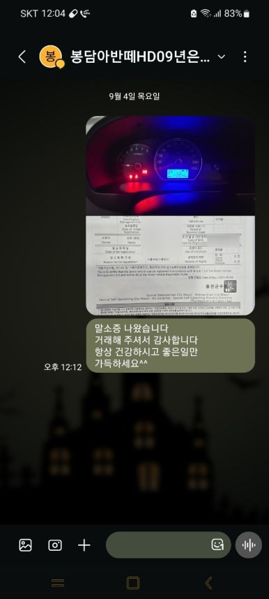 차주님께 말소증 인계 완료드렸고요. 이번 수출 거래도 깔끔하게 마무리해 드렸네요.