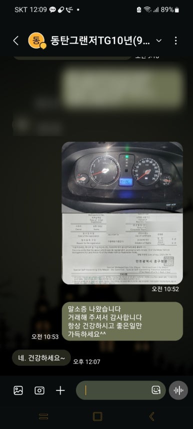 차주님께 말소증 인계 완료드렸고요. 이번 수출 거래도 깔끔하게 마무리해 드렸네요.