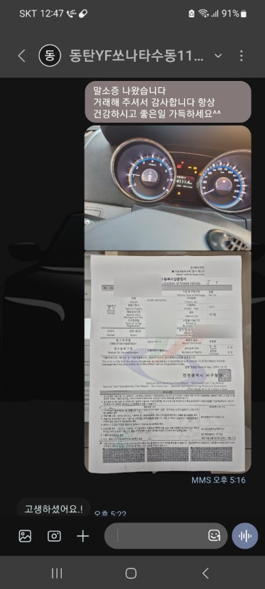 차주님께 말소증 인계 완료드렸고요. 이번 수출 거래도 깔끔하게 마무리해 드렸네요.
