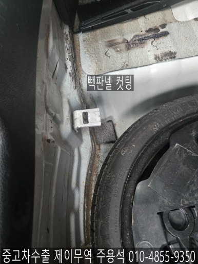 우측 옆면 부분입니다. 뒤휀다 및 c필러 컷팅이 있고요. 외관상태는 살짝 부식이 있지만 양호한 편입니다.