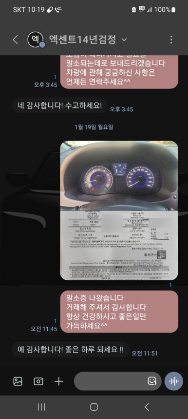 차주님께 말소증 인계 완료드렸고요. 이번 수출 거래도 깔끔하게 마무리해 드렸네요.